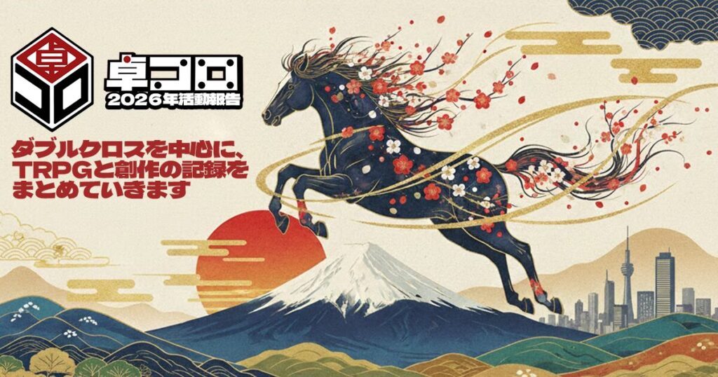 今後は月2回更新を目安に、TRPGを軸に創作(シナリオ・イラスト)の記録や、作品紹介、ダブルクロス関連の話題を書いていきたいと思います。